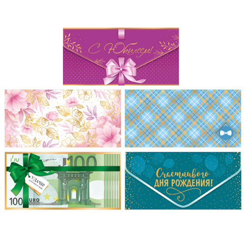 *КД-17577 Комплект конвертов для денег на склейке. Для Юбилея-2 (5 шт., золотая фольга)