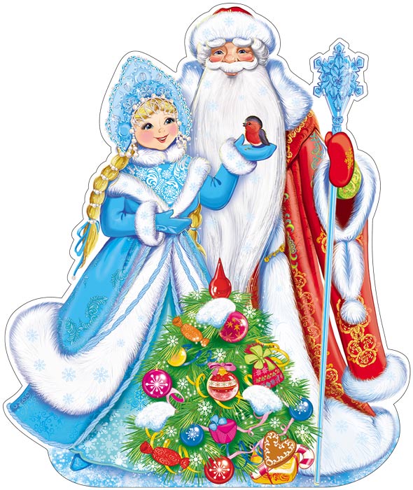Ф-14036 Плакат вырубной А3. Дед Мороз со Снегурочкой (блестки в лаке)