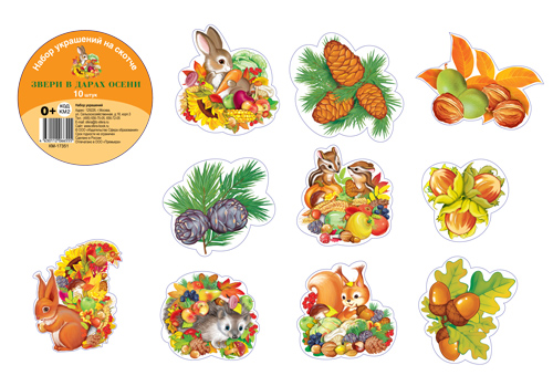 КМ-17351 Комплект украшений на скотче. Звери в дарах осени (10 фигурок в комплекте)