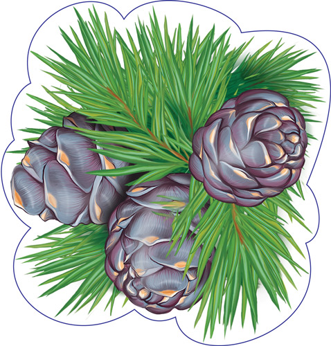 М-17352 Вырубная фигурка. Ветка кедровая с тремя шишками (двухсторонняя, ВД-лак)