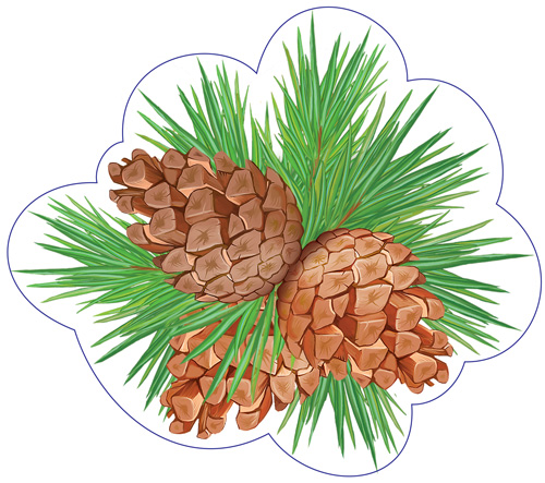 М-17354 Вырубная фигурка. Ветка сосновая с тремя шишками (двухсторонняя, ВД-лак)