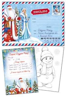 ПДМК-17546 Письмо Дедушке Морозу в почтовом конверте (конверт, письмо с текстом и раскраской на обороте)
