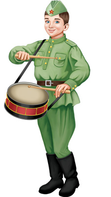 Ф-15571 Плакат вырубной А3. Мальчик-барабанщик в военной форме. Двухсторонний.- группа Профессии