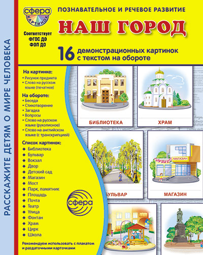 Дем. картинки СУПЕР Наш город. 16 демонстрационных картинок с текстом на обороте (учебно-методическое пособие с комплектом демонстрационного материала 173х220 мм, познавательное и речевое развитие)