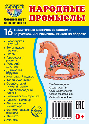 Дем. картинки СУПЕР Народные промыслы. 16 раздаточных карточек с текстом на обороте (учебно-методическое пособие с комплектом демонстрационного материала 63х87 мм, познавательное и речевое развитие)