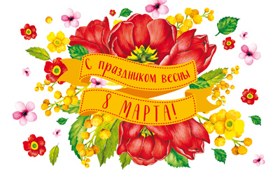 МО-14901 Мини-открытка двойная. С праздником весны 8 марта! (УФ-лак, без текста)
