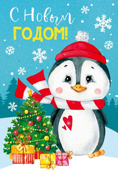 НТ-14035 Открытка среднего формата. С Новым годом! (блестки в лаке)