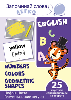 Запоминай слова легко. Цифры. Цвета. Геометрические фигуры. 25 карточек с транскрипцией на обороте (учебно-методическое пособие с комплектом демонстрационного материала для изучения иностранного языка)