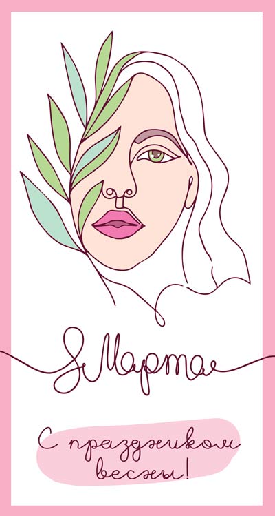 ЦВ-14423 Открытка среднего формата. 8 марта. Выборочный УФ-лак (текст)