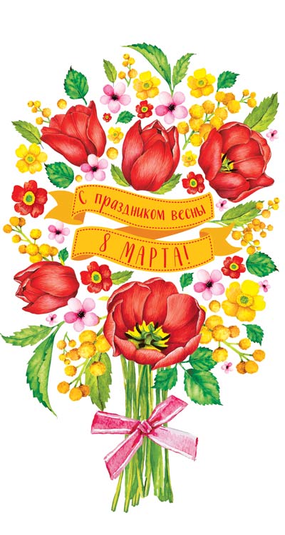 ЦВ-14417 Открытка евроформата. С праздником весны 8 марта! Выборочный УФ-лак (текст)