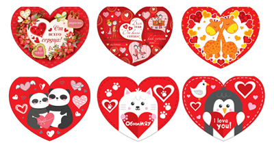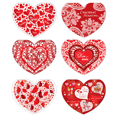 *ВА-15020 Комплект больших валентинок (6 шт., выборочный УФ-лак)