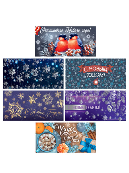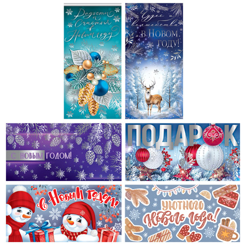 *КД-17609 Комплект конвертов для денег на склейке. Счастья и чудес в Новом Году (6 шт.)