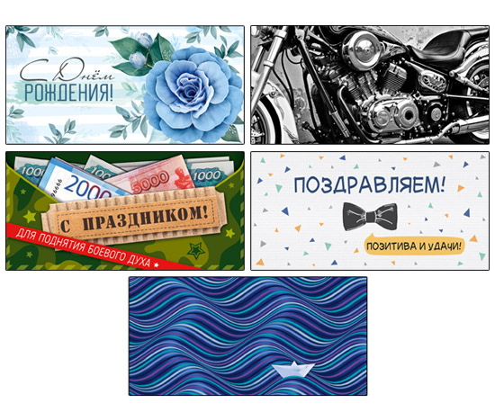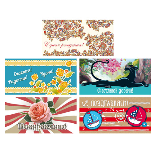 *КД-17589 Комплект конвертов для денег на склейке. Позитивного дня рождения-2 (5 шт.)