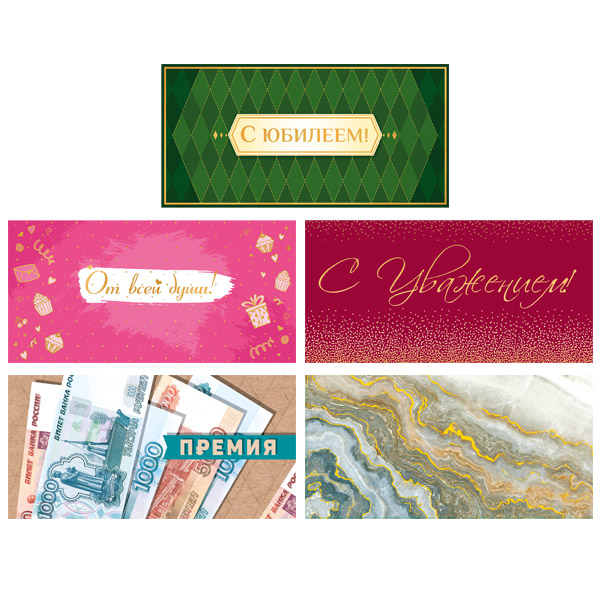 *КД-17604 Комплект конвертов для денег на склейке. С Юбилеем! (5 шт.)