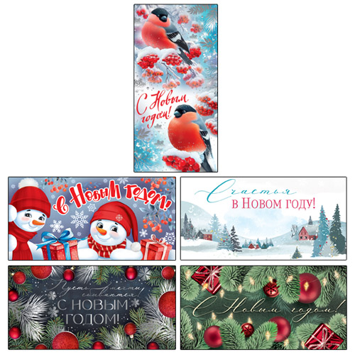 *КД-17607 Комплект конвертов для денег на склейке. Счастья и волшебства в Новом Году (5 шт.)