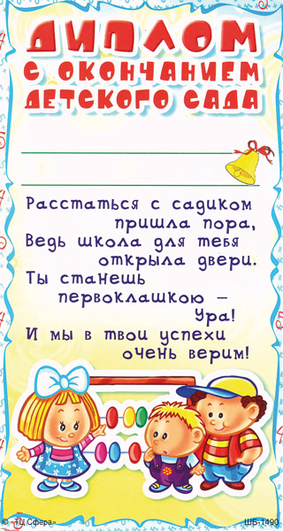 ШБ-1490 Мини-диплом с окончанием детского сада (детский, формат 110х200 мм, картон 200 г