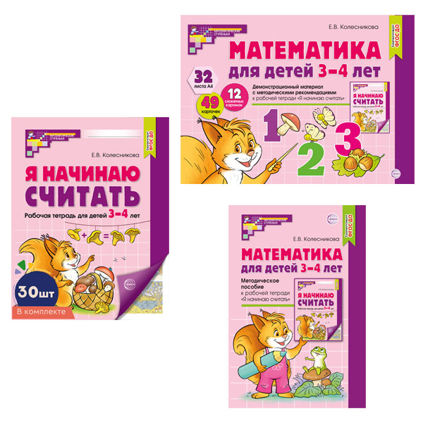 *Комплект книг. Учимся считать (для детей 3-4 лет, раскраска и рабочая тетрадь)