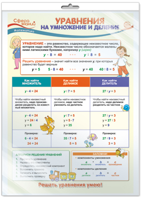 ПО-13501 Плакат А3. Математика в 2 классе. Уравнения на умножение и деление