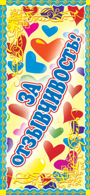 ШМ-6480 Поощрительная карточка. За отзывчивость! (детский) (фольга) (формат 61х131 мм)