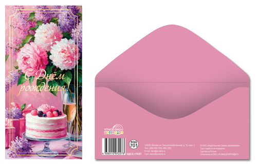 КДС2-17657 Конверт для денег на склейке. С Днем рождения! (цветы, золотая фольга)