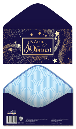 КДС2-17685 Конверт для денег на склейке. В день юбилея! (унисекс, золотая фольга, однотонный)