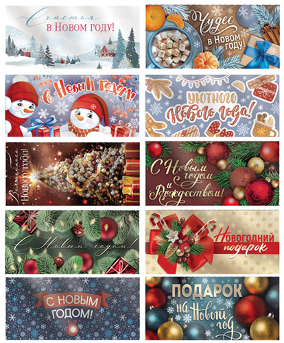 *КД-17067 Комплект конвертов для денег. Новогодний (10 штук, металлизация)