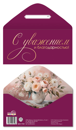 КДС2-17626 Конверт для денег на склейке. С уважением и благодарностью! (женский, цветы, золотая фольга)