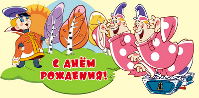 ПМ3-12357 Открытка. Приглашение на Праздник (из м-ф Буратино) 140х85мм (с блестками в лаке)