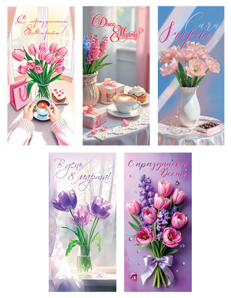 *КО-17234 Комплект открыток евроформата. 8 марта (5 шт.)