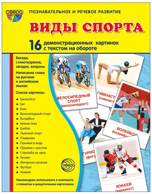 Дем. картинки СУПЕР Виды спорта. 16 демонстрационных картинок с текстом на обороте (учебно-методическое пособие с комплектом демонстрационного материала 173х220мм, познавательное и речевое развитие)