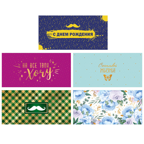*КД-17589 Комплект конвертов для денег на склейке. Позитивного дня рождения-2 (5 шт.)