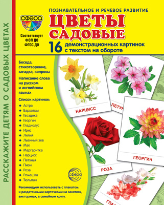 Дем. картинки СУПЕР Цветы садовые. 16 демонстрационных картинок с текстом на обороте (учебно-методическое пособие с комплектом демонстрационного материала 173х220 мм, познавательное и речевое развитие)