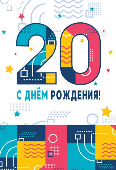 ЛН-13757 Открытки среднего формата. С днем рождения! 20 лет (Твин-лак)