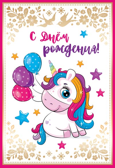 Д-13866 Открытка среднего формата. С днем рождения! (золотая фольга)