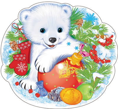 ФМ1-12938 Плакат вырубной А4. Медвежонок в дарах зимы (с уф-лаком)