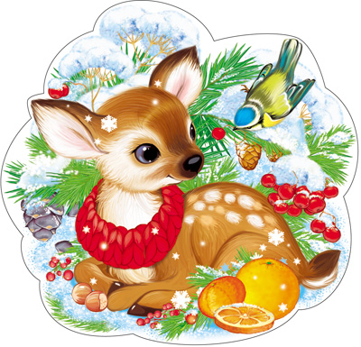 ФМ1-12939 Плакат вырубной А4. Олененок в дарах зимы (с УФ-лаком)