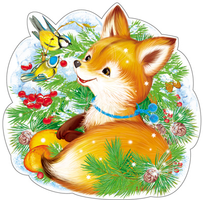 ФМ1-12937 Плакат вырубной А4. Лисенок в дарах зимы (с УФ-лаком)