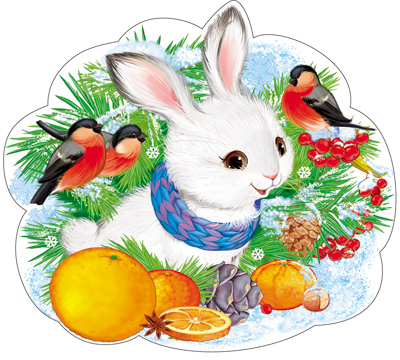 ФМ1-12936 Плакат вырубной А4. Заяц в дарах зимы (с УФ-лаком)