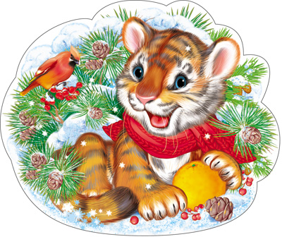 ФМ1-12940 Плакат вырубной А4. Тигренок в дарах зимы (с уф-лаком)