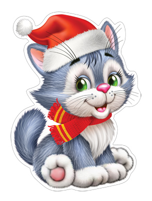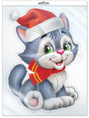 Ф-14805 ПЛАКАТ ВЫРУБНОЙ А3 В ПАКЕТЕ. Новогодний котенок (УФ-лак, в индивидуальной упаковке, с европодвесом и клеевым клапаном) - группа Животные