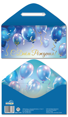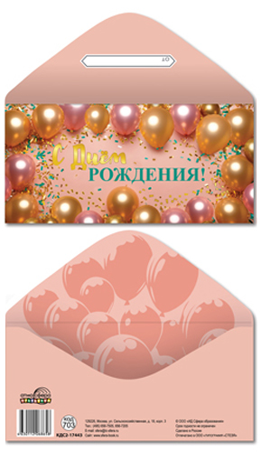 КДС2-17441 Конверт для денег на склейке. С Днем рождения! (золотая фольга, шарики)