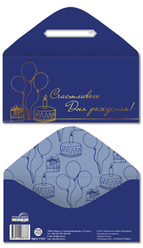 КДС2-17451 Конверт для денег на склейке. Счастливого дня рождения! (унисекс, золотая фольга)