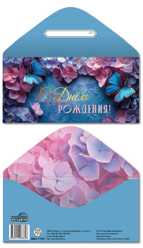 КДС2-17446 Конверт для денег на склейке. В День рождения! (женский, цветы, золотая фольга)