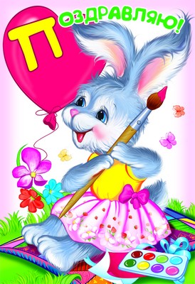 Д-8662 Открытка среднего формата Поздравляю! Детская. Текст (блестки в лаке, конгревное тиснение)