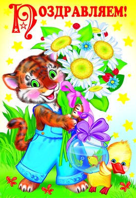 Д-8661 Открытка среднего формата Поздравляем! Детская. Текст (блестки в лаке, конгревное тиснение)