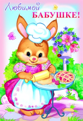 ЦР-8653 Открытка среднего формата Любимой бабушке! Детская. Текст (блестки в лаке, конгревное тиснение)