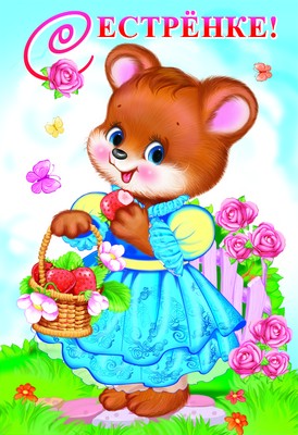 ЦР-8655 Открытка среднего формата Сестренке! Детская. Текст (блестки в лаке, конгревное тиснение)