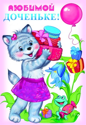 ЦР-8651 Открытка среднего формата Любимой доченьке! Детская. Текст (блестки в лаке, конгревное тиснение)