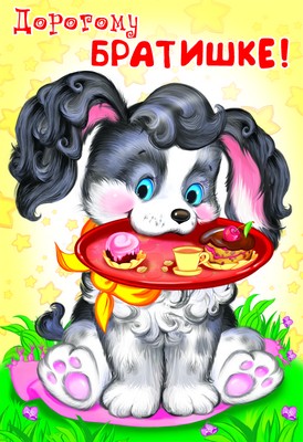 ЦР-8656 Открытка среднего формата Дорогому братишке! Детская. Текст (блестки в лаке, конгревное тиснение)