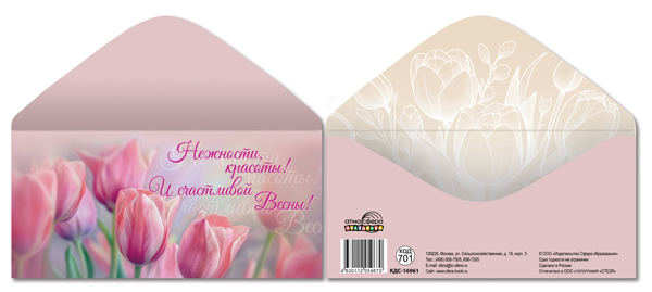 КДС-16961 Конверт для денег на склейке. Нежности, красоты! И счастливой весны! (женский, цветы)